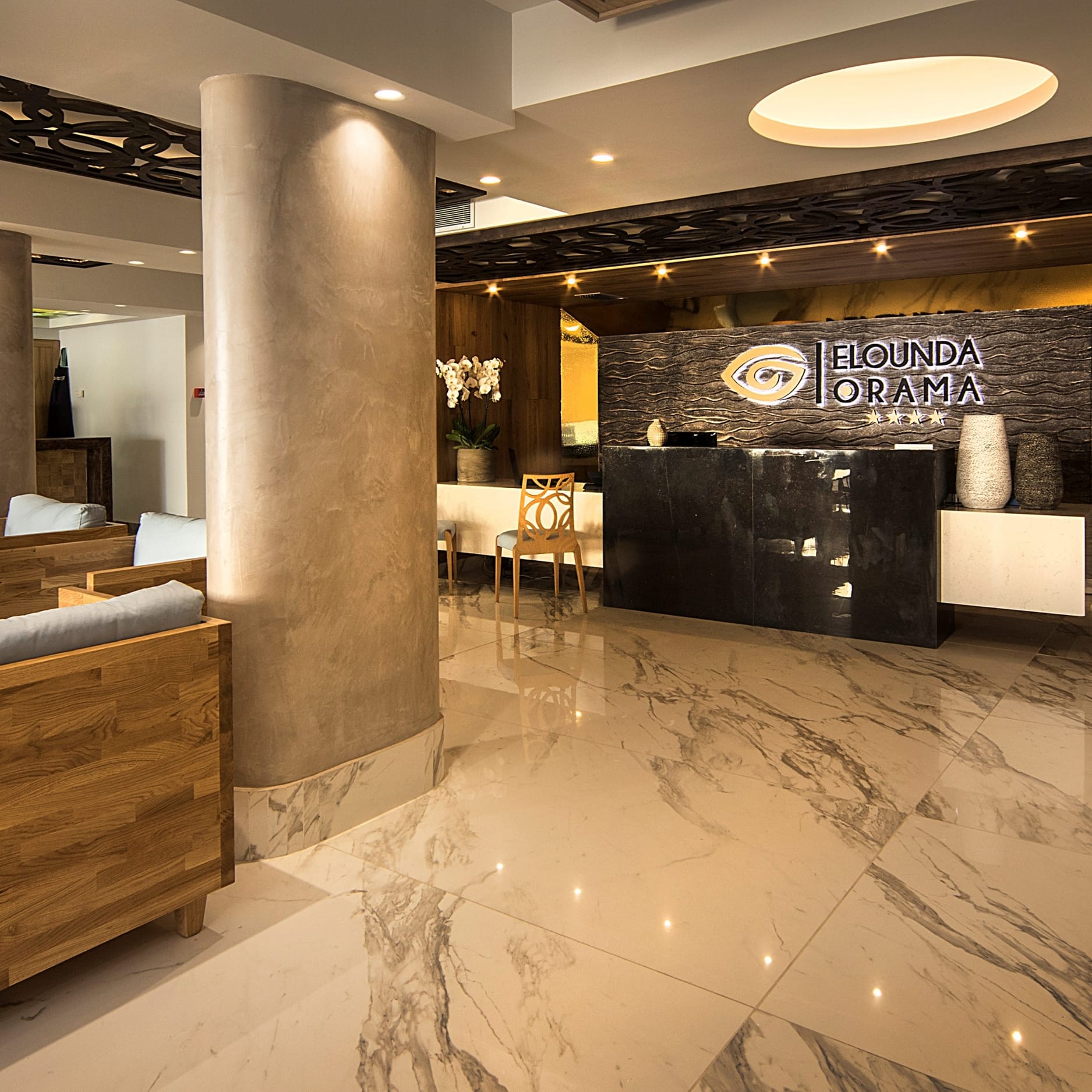Meet the magical conjunction of tranquility and serenity in one. Elounda Orama Hotel is a complex of three buildings located in Mirabello Bay in enchanting town of Elounda. The natural beauty of Crete, the sensation of the landscape, the breathtaking sea view, the azure colored sky and the amber‘s shades sunsets provide a unique location for our guests. Based on an architectural philosophy inspired by the combination of natural stone and wood, the design of the hotel highlights the coexistence of modern luxury with elements of Cretan culture. All three buildings of the hotel have a terrace overlooking the sea, further majority of the rooms offer panoramic sea views and views of Elounda. All facilities inspire romantic setting for couples surrounded by the natural beauty. The ideal location of Elounda Orama Hotel offers leisure, entertainment and is a focal point of exploration for everyone. Within walking distance from hotel, there is a sand and pebble beach.