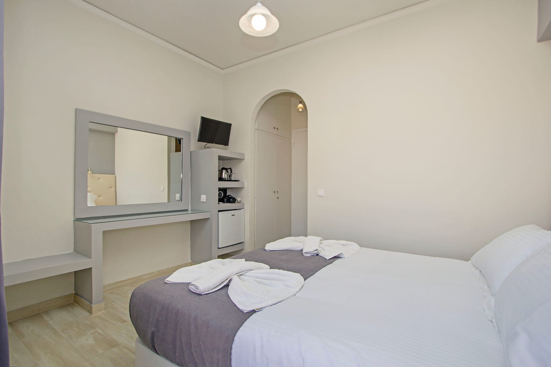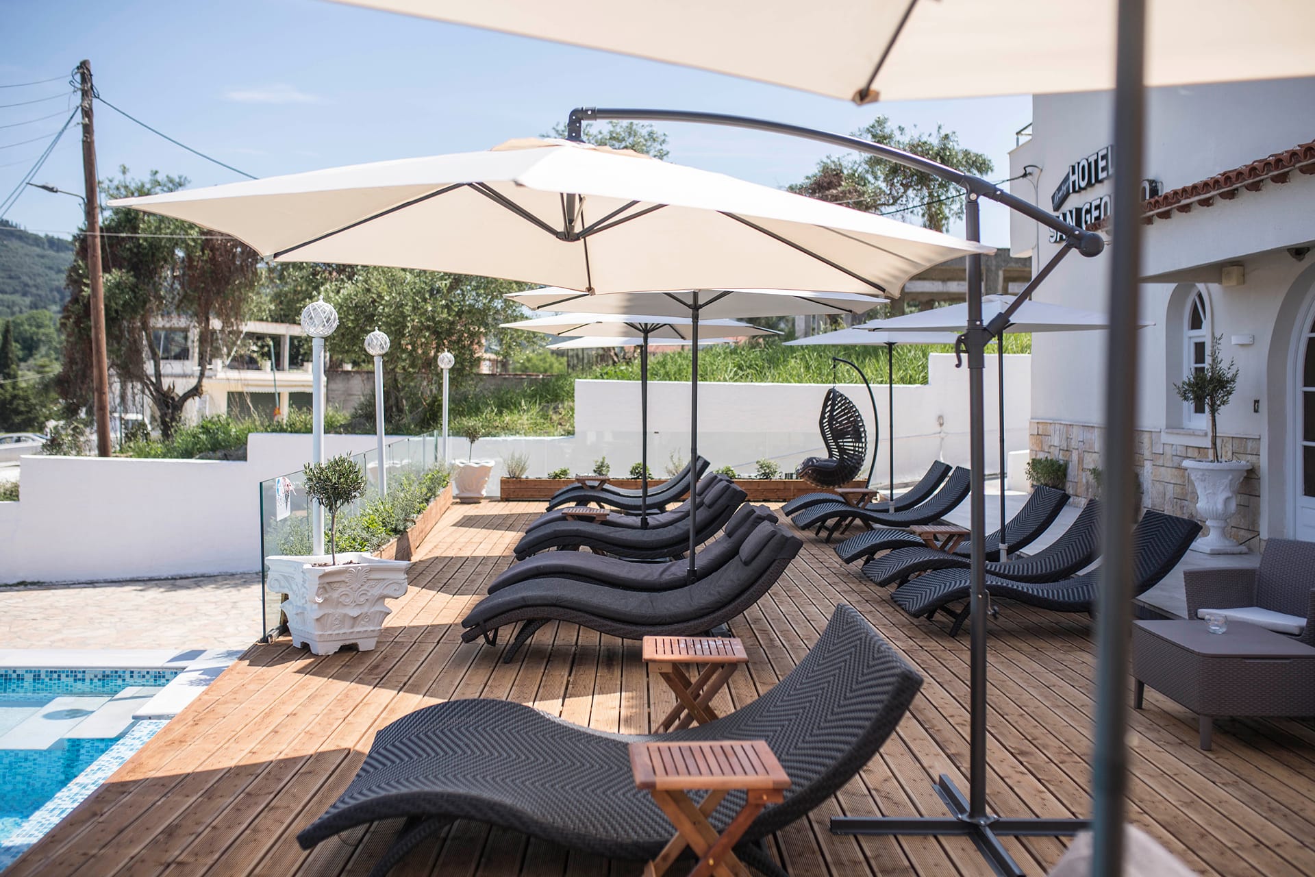 A simple trip can become an unforgettable experience. The San Georgio Hotel with an infinity outdoor fresh water Pool, in the North of Corfu Island, offers renovated rooms, continental Breakfast in an excellent location in Agios Georgios Pagoi, only few meters from an emerald beach, blue flag awarded. Renovated to the highest architectural standards to create a modern, functional and comfortable mini hotel.